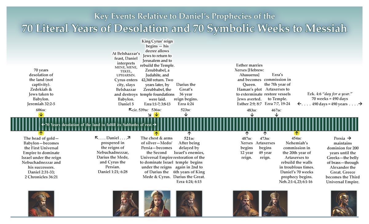 Here are marked the key dates and figures on a timeline of history from the Desolation of Jerusalem until the commission of Artaxerxes to Nehemiah.