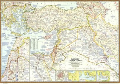High resolution map of Israel, including Egypt, Jordan, Iraq, Iran, Lebanon,